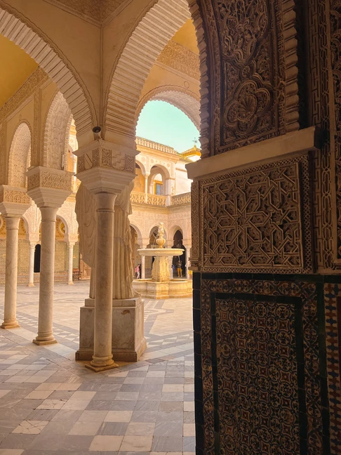 A royal palace renowned for its intricate Mudejar architecture and lush expansive gardens.