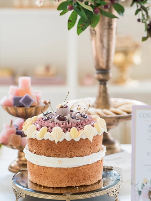 I find working with odd numbers offers a beautiful balance, a design trick I picked up moons ago. Lay your serving ware and pastries in rows of odds, the repetition too is a fun little trick. You want your viewers eye to travel and this is where having a variation of heights will create more interest. This can be height in you serving ware to your pastry sizes. I like to place taller more substantial pastries with a top-heavy design on flatter dish ware so that they ground the setting and are visible, where I place shorter pieces on taller pedestals to give them some oomph, sometimes even stacking them to create a bountiful impression.