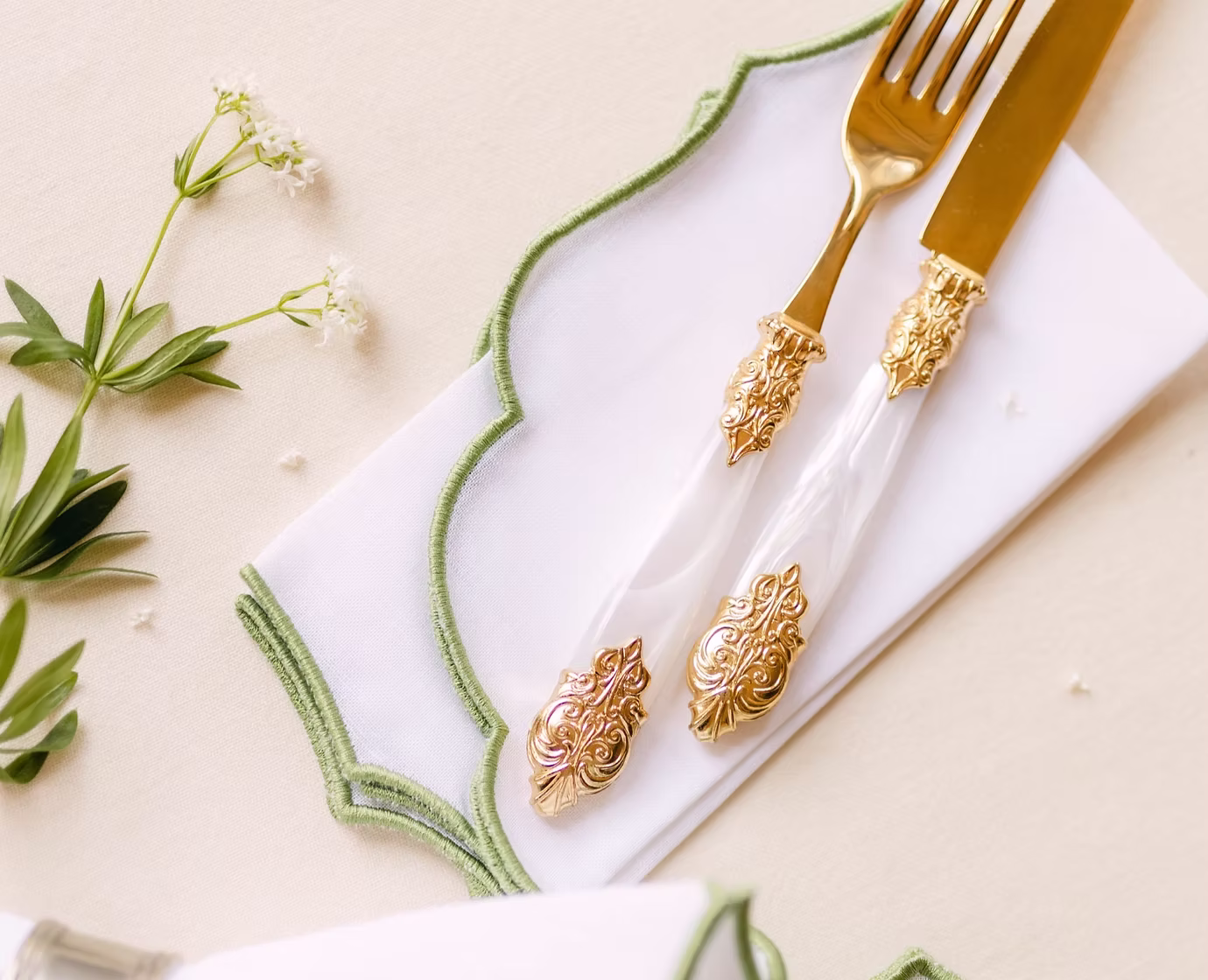 With its graceful and intricate embroidery, it effortlessly infuses a subtle yet undeniable touch of elegance. Pairs beautifully with our Jardin Placemat.