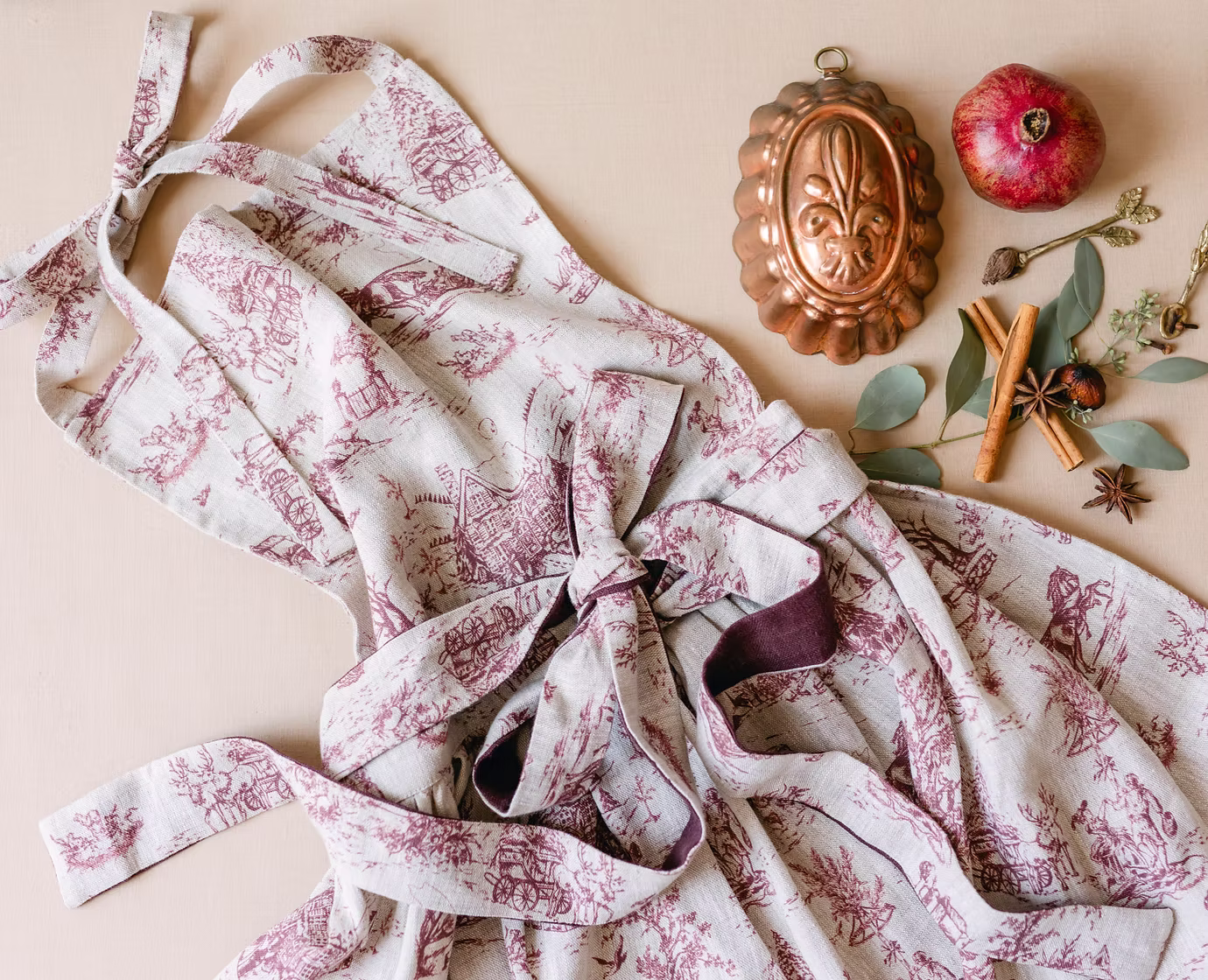 Elevate your holiday cooking with our delightful apron featuring a pleated skirt, beautifully showcasing the enchanting scenes from our Winter Wonderland Toile collection.