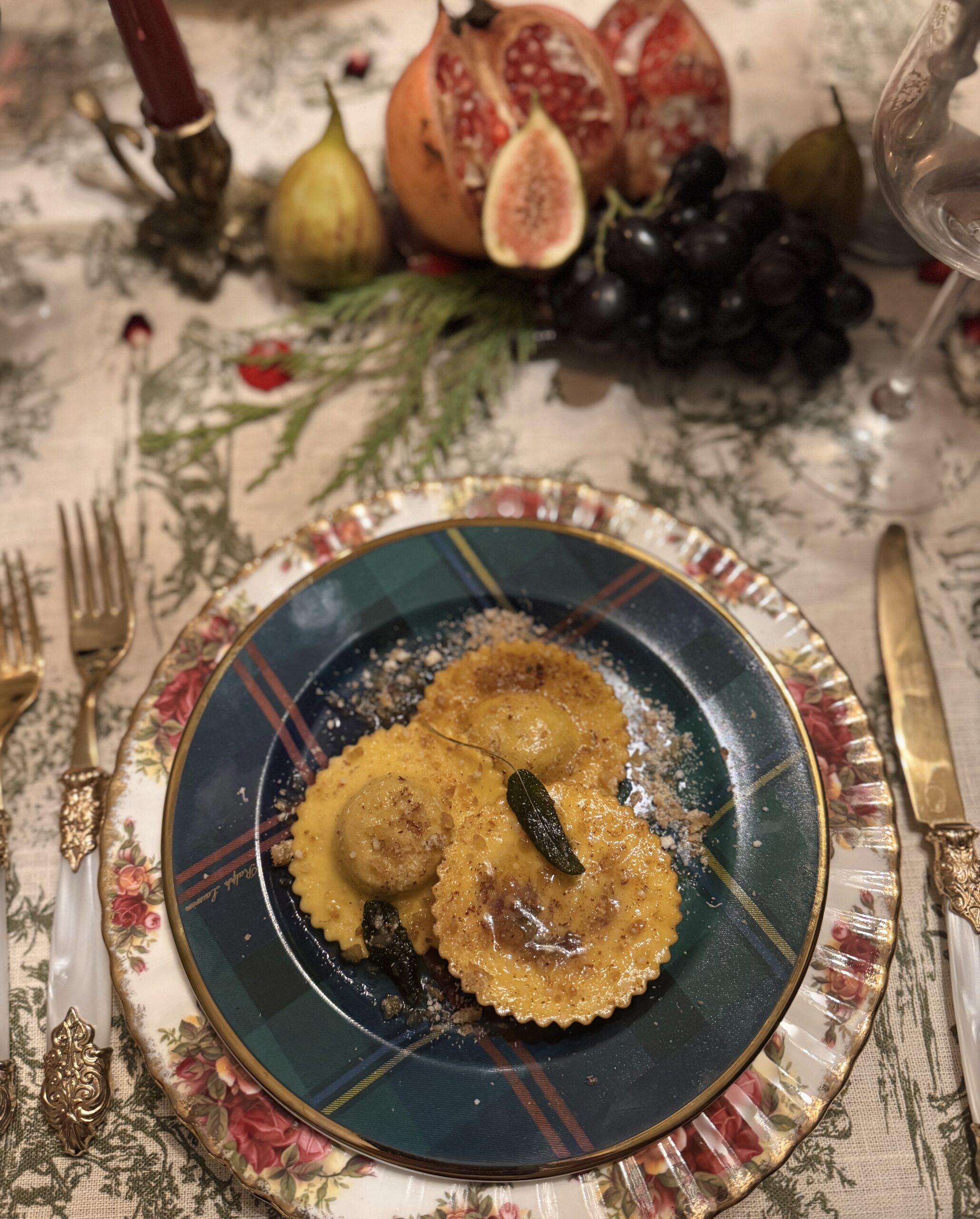 Chestnut & Mushroom Ravioli with Brown Butter Sage and Chestnut Crumbs