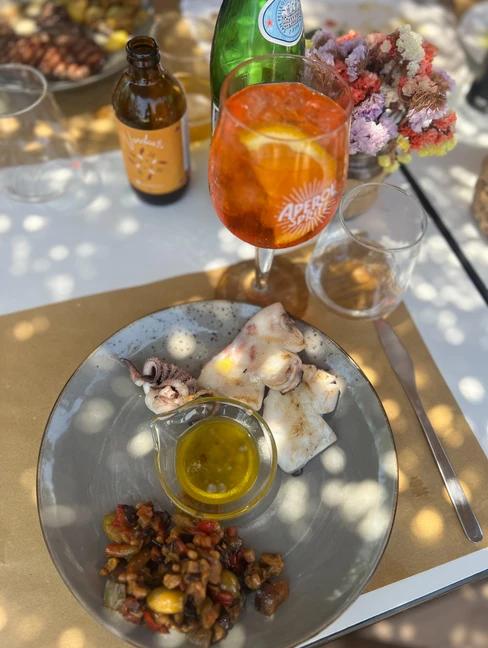 Lunch seaside included seppie arrostite- grilled fish with a side of you guessed it, caponata.