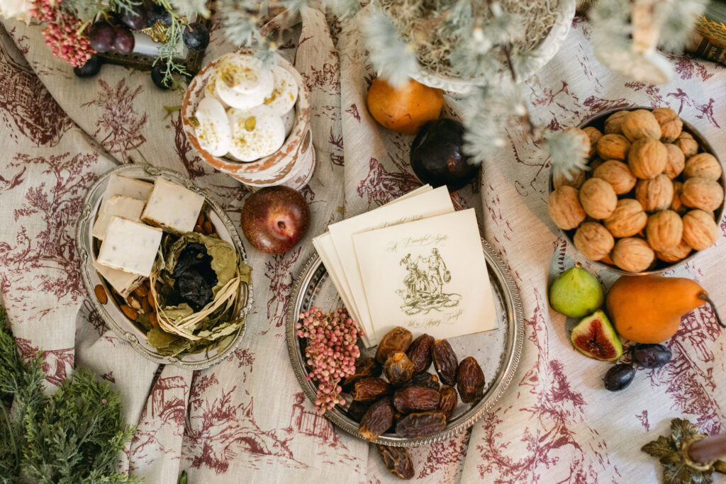As someone who treasures the nostalgia of slow hosting—the long meals, the rituals, the sense of togetherness—this Provençal tradition spoke to me instantly. It echoes the same Mediterranean spirit I always return to in my work: a love of generous tables, meaningful details, and the romance of heritage.
