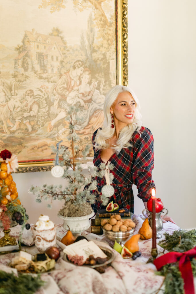 There is something so beautiful in creating a holiday moment that feels lived-in rather than staged—placing bowls of nuts on the table, setting citrus on little vintage plates, letting things spill, shimmer, and feel effortlessly charming.