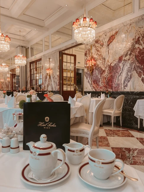In the Sacher Wien, classic Viennese cuisine, beautiful dining experience.